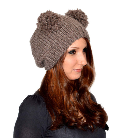 Bear Ear Beanie or Womens Double Pom Pom Hat Bear Ears Hat Custom Winter HatRegular price $21.97 USDRegular priceUnit price / per-