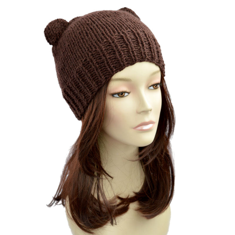 Bear Beanie in Brown Hand Knitted Bear Ear Hat Womens Winter Hat