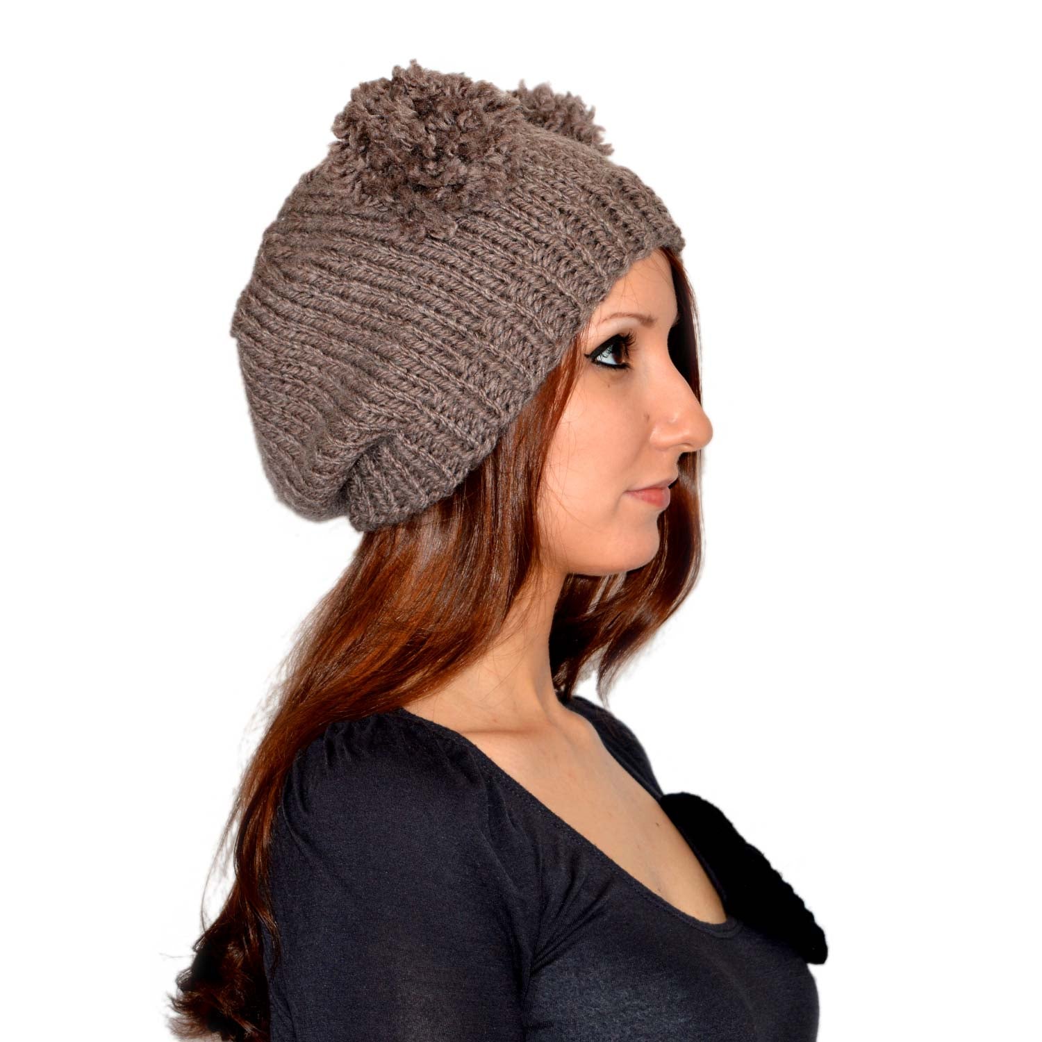 I knitted this cute bear ear beanie in brown. It's a little slouchy beanie. This womens double pom pom hat made of thick soft yarn and so very warm. Custom winter hat or 2 pom pom beanie by StopFrost. Any color, any size. Bear ears hat for lovers of animal hats or for a bear costume. Two pom pom beanie or mouse hat will warm you in winter, spring and autumn.