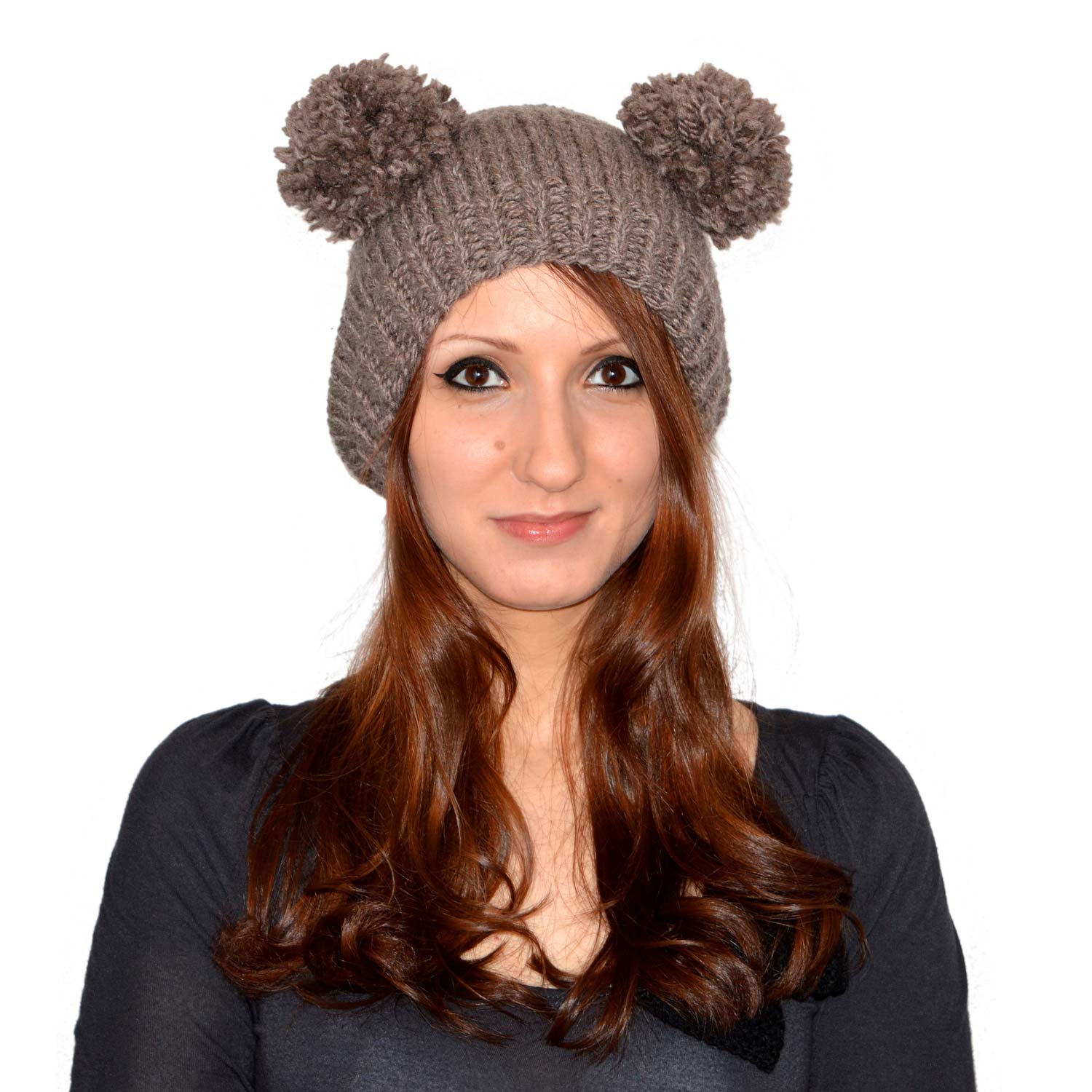 Bear Ear Beanie or Womens Double Pom Pom Hat Bear Ears Hat Custom Winter Hat