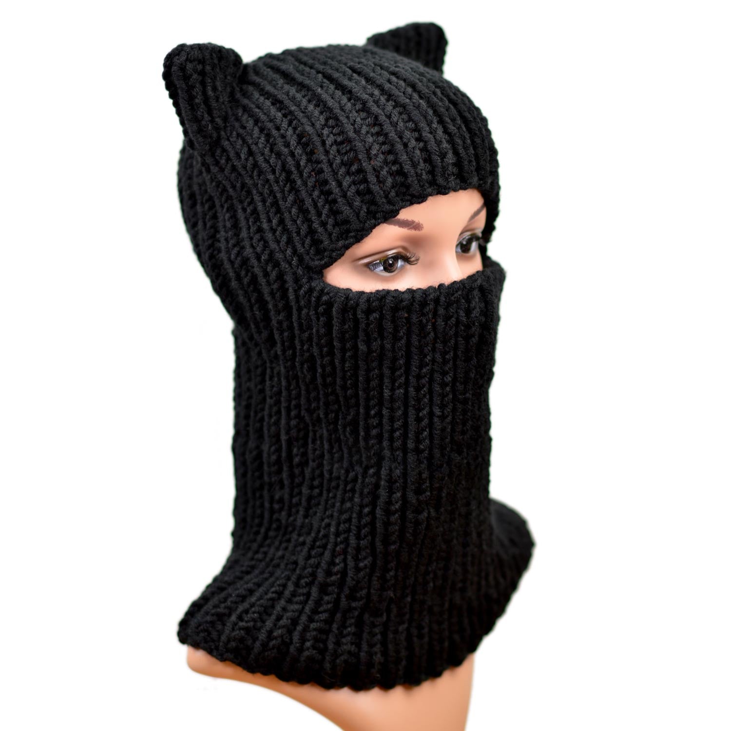 Black Cat Ear Balaclava Cat Ear Beanie Cat Ski Mask Cat Ear Hat Cat Hood Hat