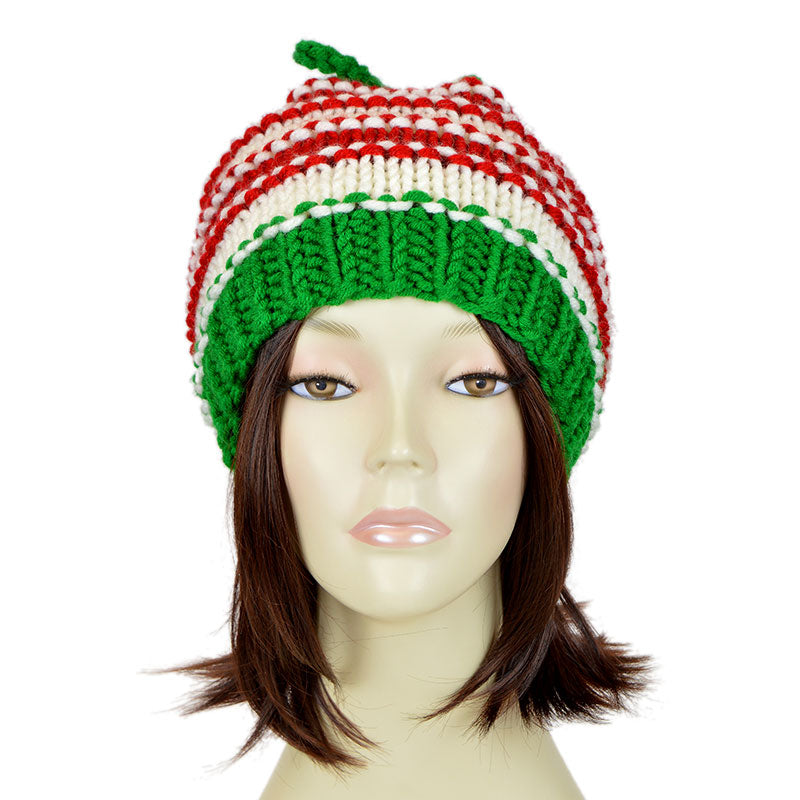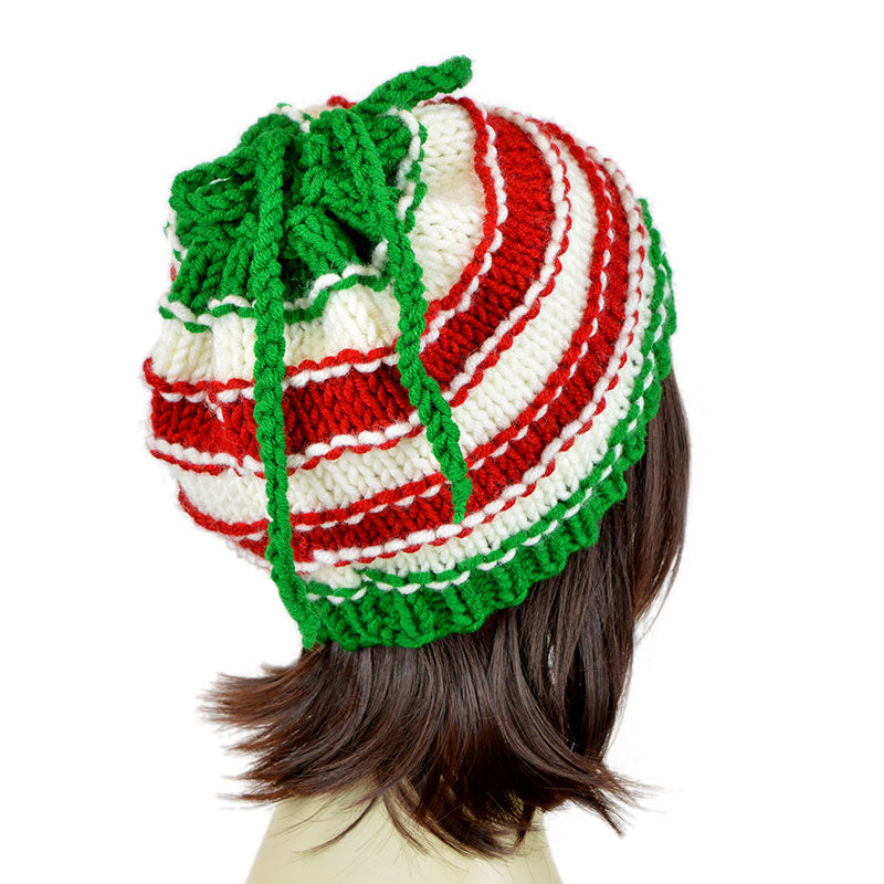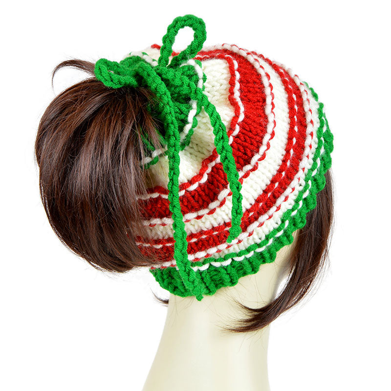 Christmas Hat Ponytail Beanie Xmas Striped Hat Red White Green Santa Hat Elf Hat
